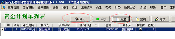 【新建】功能,是根據(jù)項(xiàng)目、月份和資金預(yù)算及預(yù)算對(duì)應(yīng)的成本來(lái)創(chuàng)建資金計(jì)劃的內(nèi)容,其中預(yù)算科目名稱可以重復(fù),可以對(duì)應(yīng)不同的成本名稱。