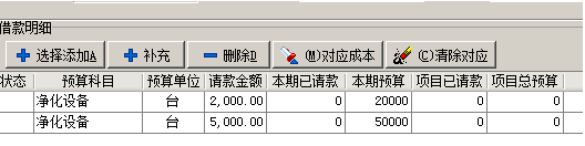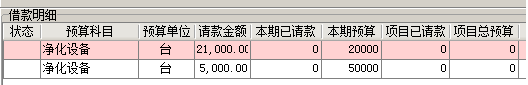我們選擇其中兩項(xiàng),高效過(guò)濾器和移動(dòng)式消毒車,其中高效過(guò)濾器預(yù)算金額為20000元、移動(dòng)式消毒車預(yù)算費(fèi)用為50000元,當(dāng)我們的請(qǐng)款金額小于預(yù)算金額時(shí)候,顯示為正常的白色。