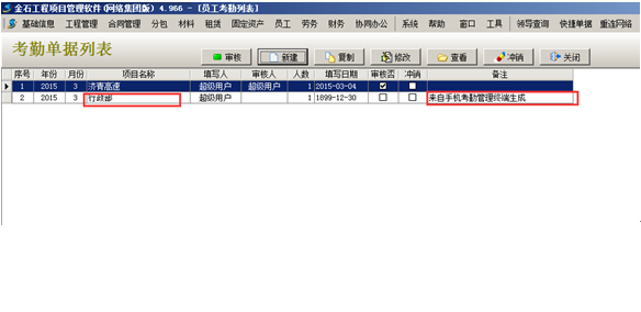 考勤單據(jù)生成之后可進入到系統(tǒng)中查看到來自“手機考勤終端”生成的考勤單據(jù),如圖: