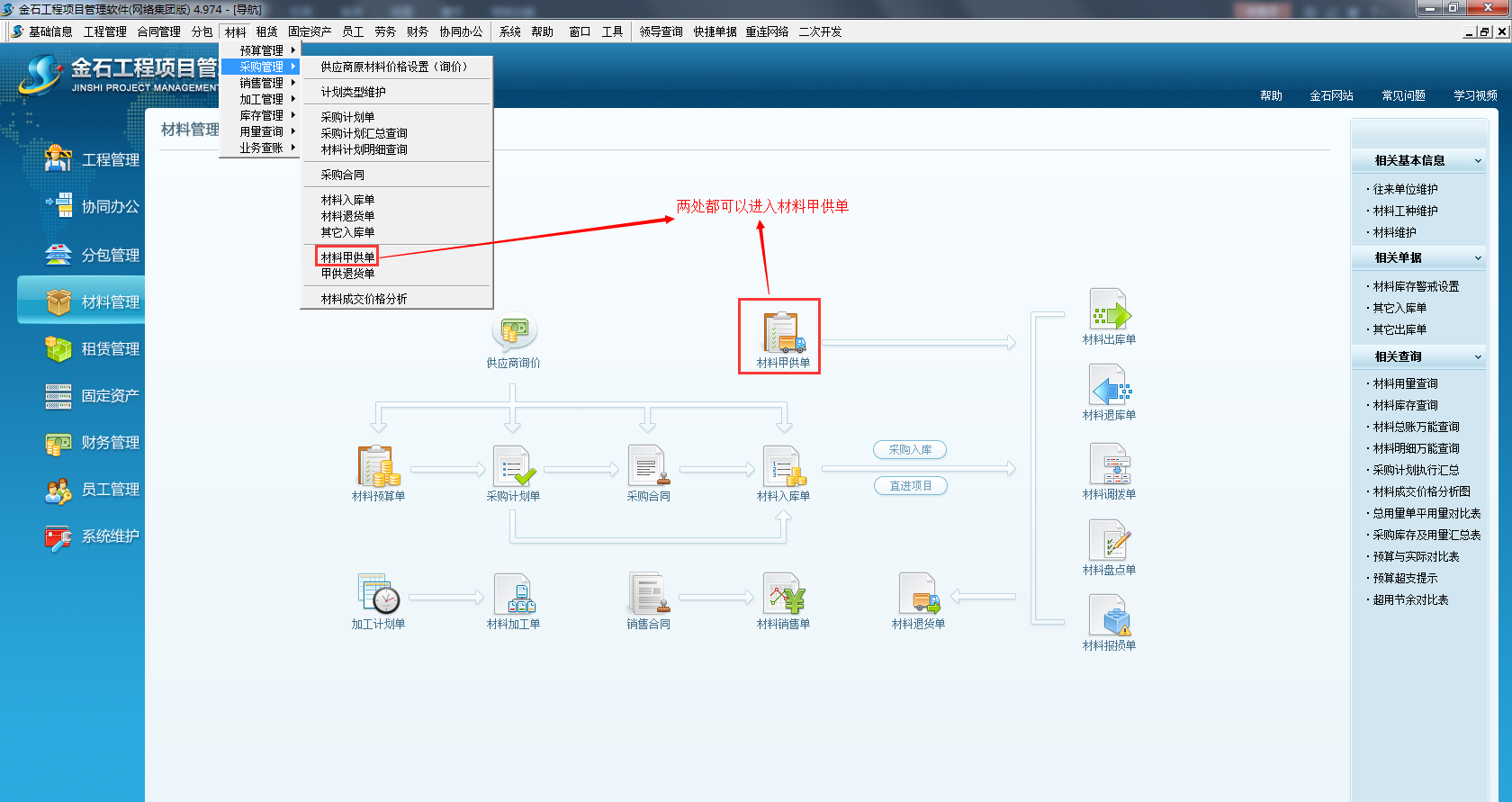 工程甲供材料管理所涉及到的單據(jù)有材料甲供單和承包合同。 【材料甲供單】是登記當(dāng)時(shí)發(fā)生項(xiàng)目的甲供供應(yīng)材料的單據(jù)。錄入本單據(jù)前,需先錄入要用到基礎(chǔ)信息中的【材料維護(hù)】、【項(xiàng)目維護(hù)】(包括【庫(kù)房信息】、【領(lǐng)料班組信息】)、【往來(lái)單位維護(hù)】。