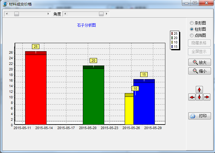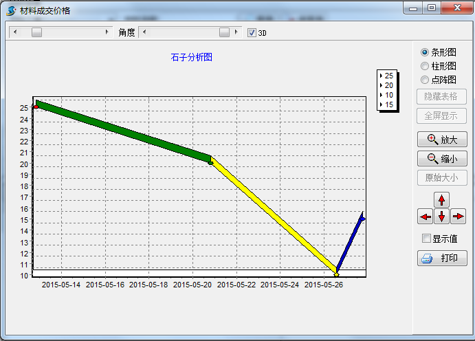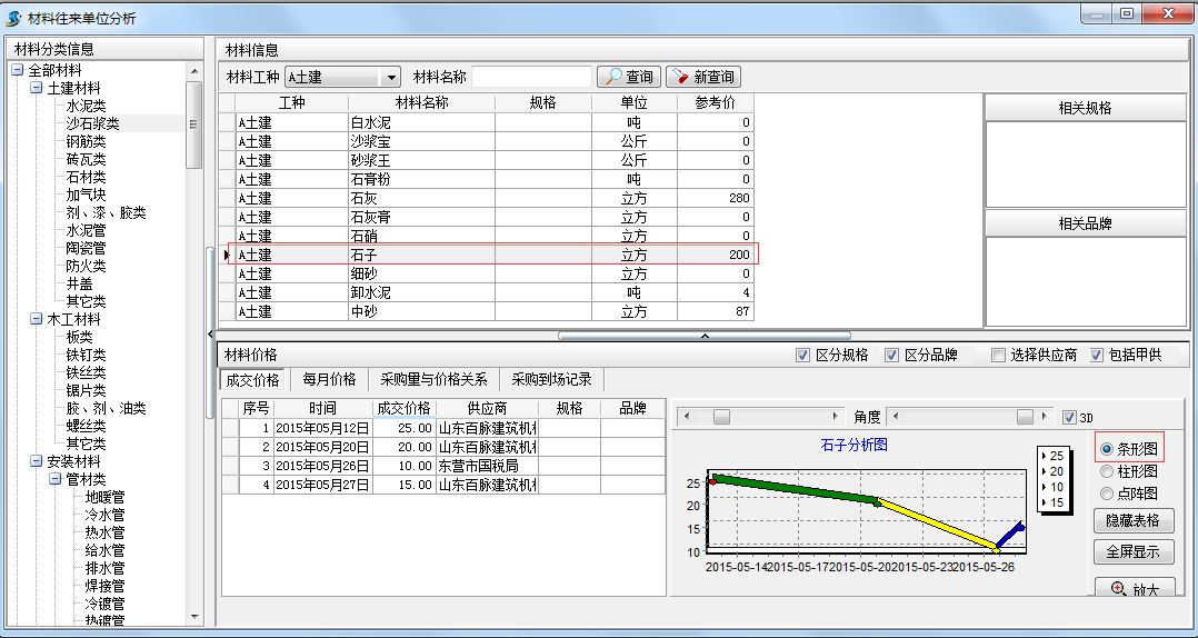 在工程項目管理系統(tǒng)中【材料成交價格分析圖】是用來查詢原材料成交價格的分析圖表,界面如下: