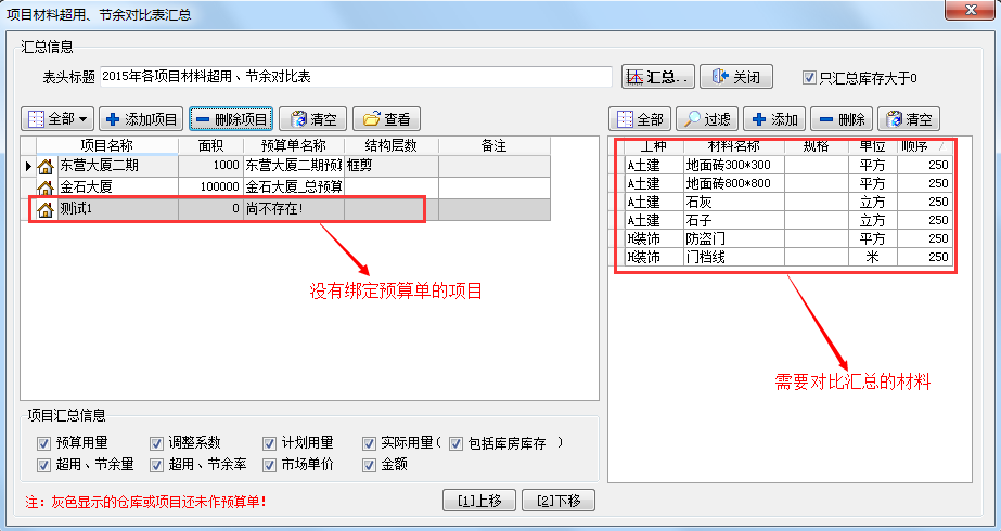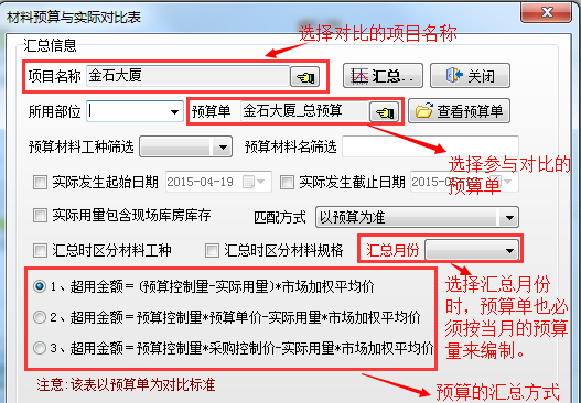 預算單材料名稱為基準的,而且預算單里區(qū)分了工種,所以需要將“匯總時區(qū)分材料工種”打鉤