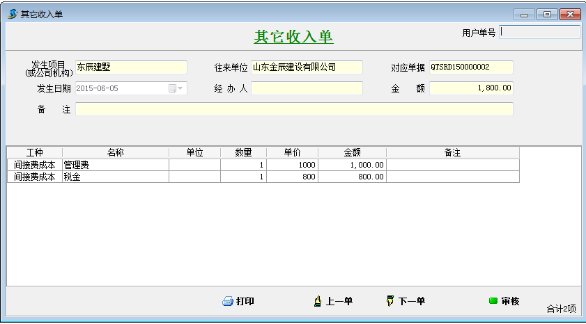 在工程項目資質掛靠管理中甲方直接把承包款支付給借資質公司(乙方B),我公司不會跟甲方產生往來賬款。由于是借的我方的資質,乙方B需要向我公司支付管理費或者稅金。通過其它收入單來記錄這筆費用。如下圖: