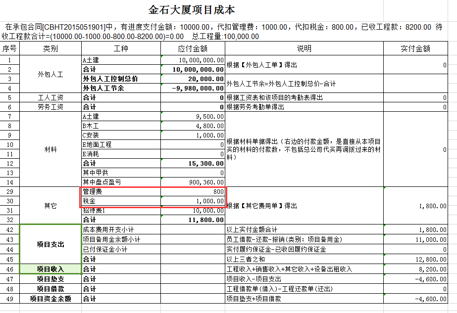 填寫完成【代扣管理費稅金】模塊時待收款金額