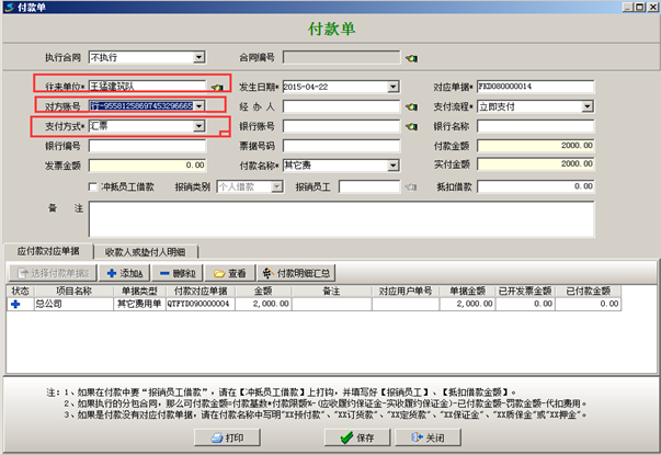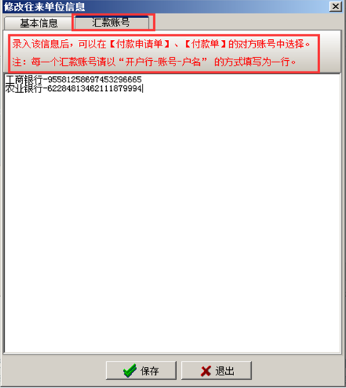 可在工程項(xiàng)目管理軟件的往來單位信息中設(shè)置多個(gè)銀行賬戶,在財(cái)務(wù)使用付款申請(qǐng)單、付款單、收款單時(shí),可調(diào)用賬戶信息,如下圖: