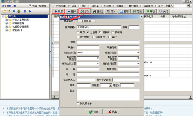 工程項(xiàng)目管理軟件基礎(chǔ)信息-往來單位維護(hù)(審核)