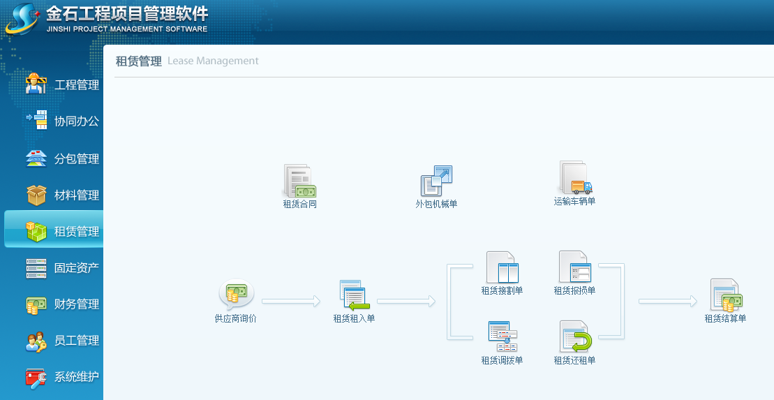 在建筑施工中,材料往往是通過采購或者租賃得來的。所以在建筑材料管理軟件中還要對租賃的材料進(jìn)行對應(yīng)的管理。建筑材料管理軟件針對材料租賃過程中的材料租入合同、材料租入、材料租入還租、材料租入報停和材料租賃結(jié)算實行一體化流程管理。建筑材料管理軟件中材料租入合同是租賃業(yè)務(wù)的指導(dǎo)性文件。合同簽訂之后,租入、歸還、報停的后續(xù)操作都圍繞合同而開展,甚至在進(jìn)行租入結(jié)算時軟件會自動調(diào)用租入合同所采用的“日期計算方式”和所擬定的“日租金單價”。