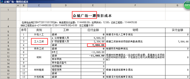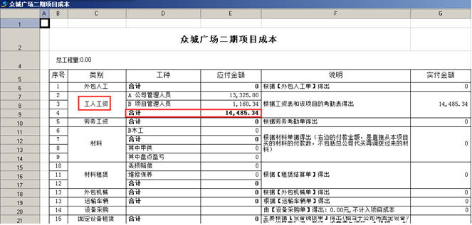 “眾城商場一期”項(xiàng)目成本-“工人工資”,如圖: