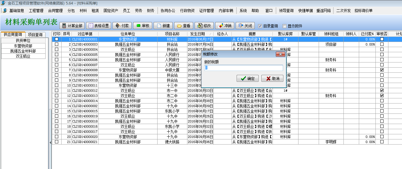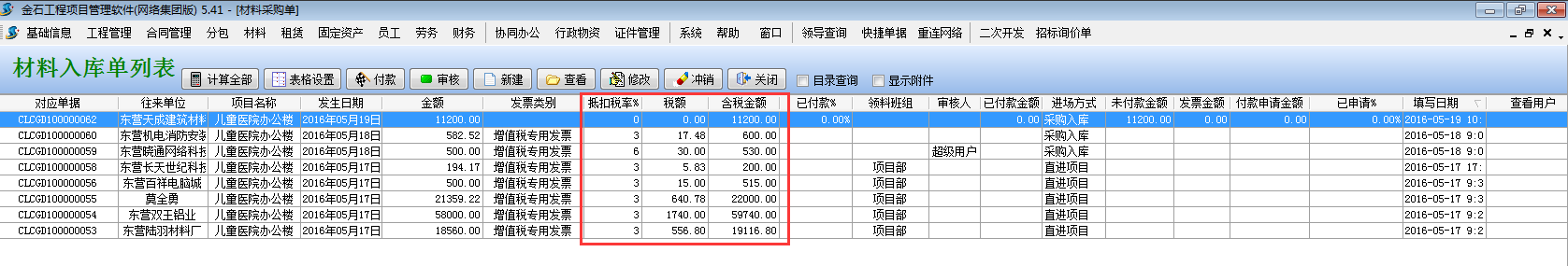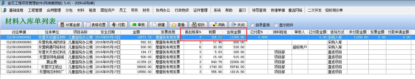 工程項(xiàng)目管理系統(tǒng)為適應(yīng)“營改增”政策升級到5.4版本以后,如下圖: