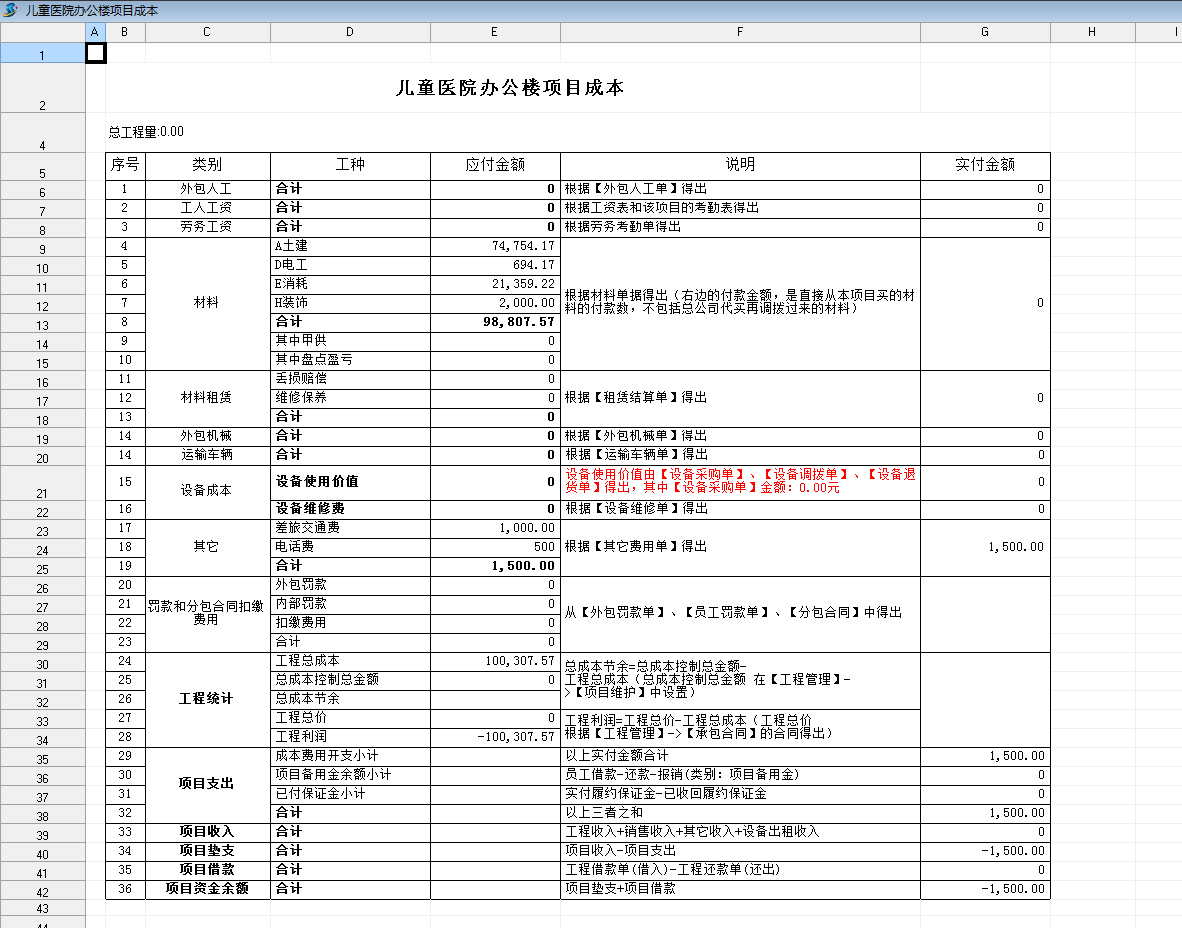 我們以項(xiàng)目成本利潤為例,下圖為“不含稅金額計(jì)算成本”查詢結(jié)果: