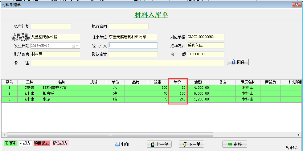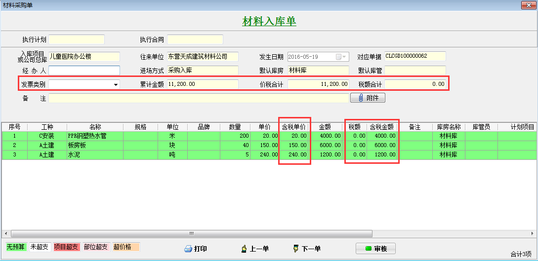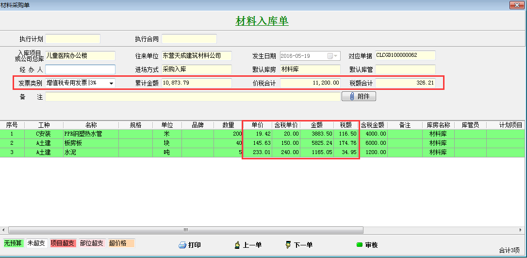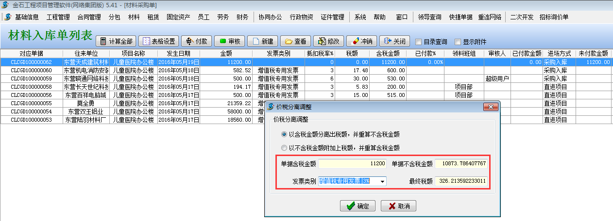 2.在營改增后.以前版本做的單據(jù)如何實(shí)現(xiàn)價稅分離調(diào)整?我們以材料入庫單(即材料采購單)為例,進(jìn)行演示: