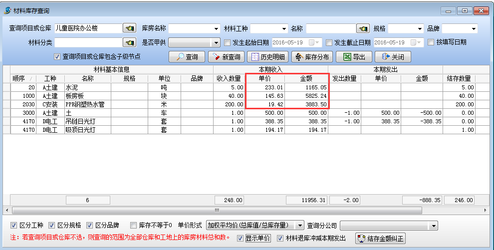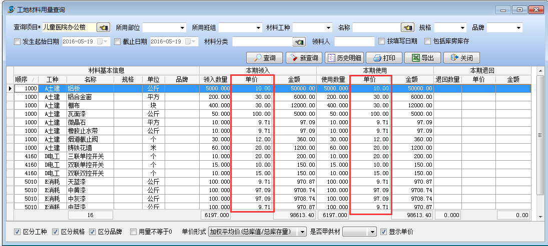 ⑴.庫存查詢和用量查詢以不含稅單價和金額統(tǒng)計(jì)。如下圖: