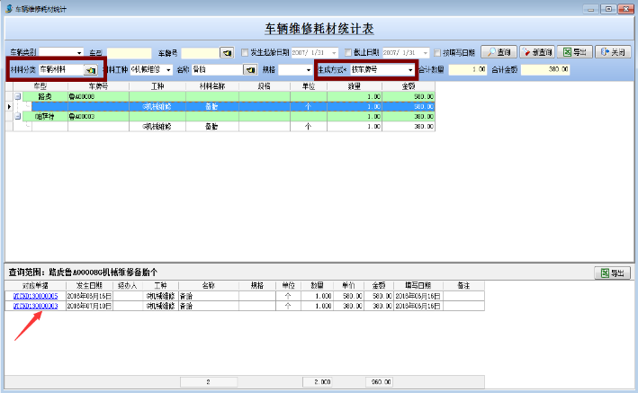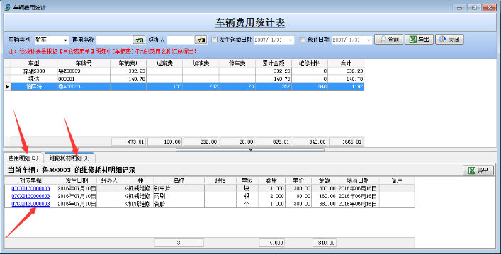 可根據(jù)生成方式進(jìn)行匯總 包括(以車牌號匯總和以材料名稱匯總)