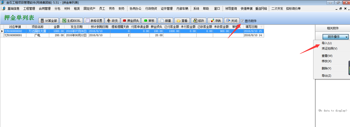 1.建立押金單、押金提醒(導入附件)->審核確認(支持多級審核)