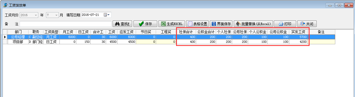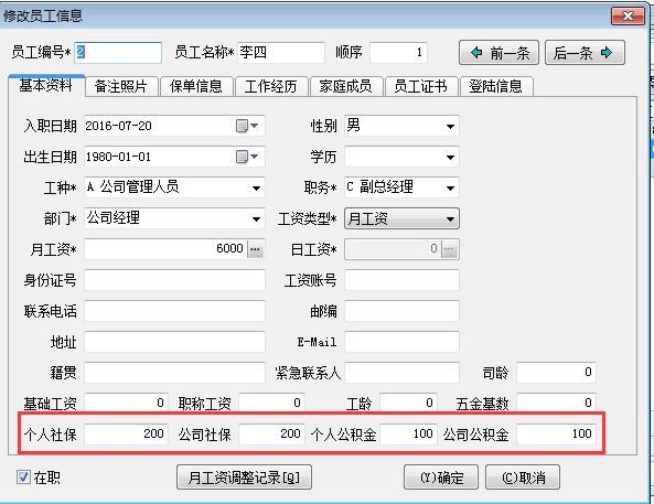 1. 首先在工程項目管理系統(tǒng)員工維護填寫好個人社保,公司社保,個人公積金,公司公積金相應(yīng)的金額。如下圖: