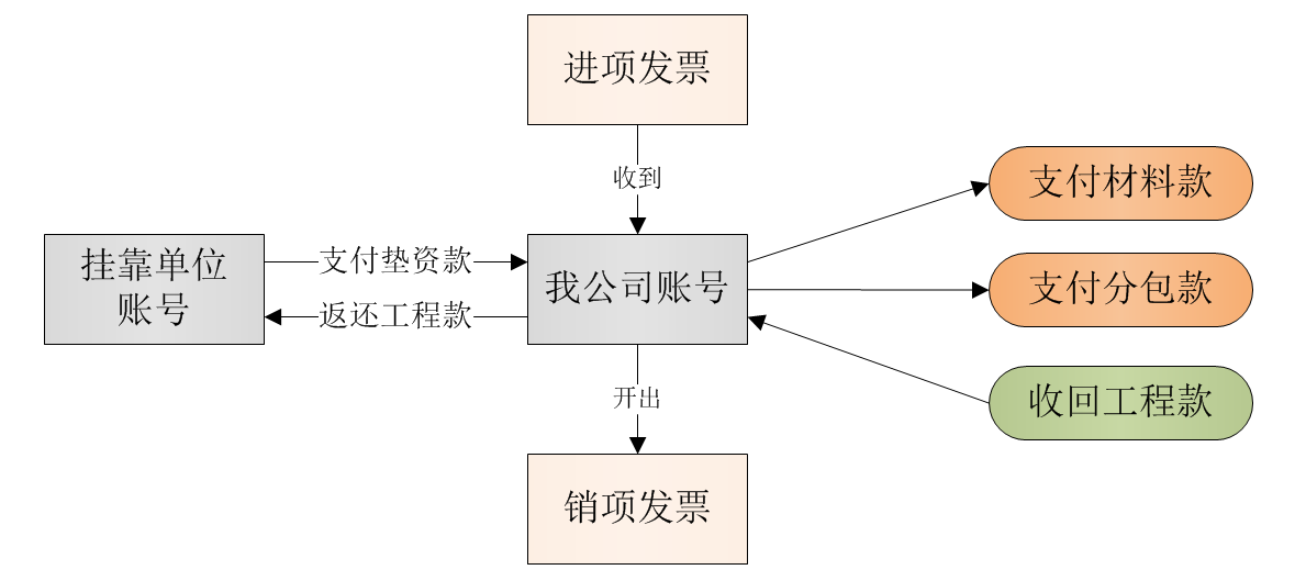 1、由于“營改增”后,為實現(xiàn)進項發(fā)票的沖抵、我們會要求掛靠單位給我們提供進項發(fā)票,他所購買的材料款、收到的工程款必須走我方的公司賬戶。材料供應(yīng)商開具的發(fā)票抬頭也必須是我方的單位名稱,這樣就使得“發(fā)票”、“付款”兩者一致。
