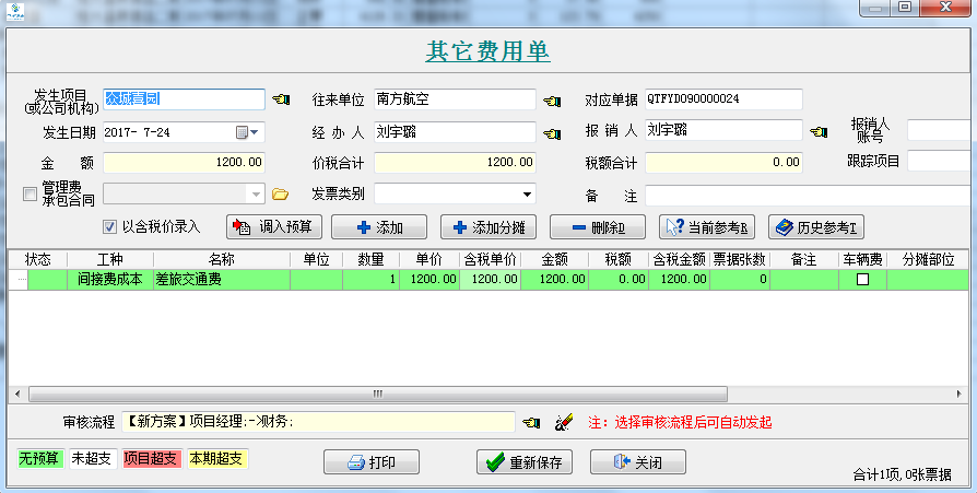 3、以其他費用的報銷為例,先填寫一張【其他費用單】(如果是材料采購或外包人工單等單據(jù)類似于其他費用單)