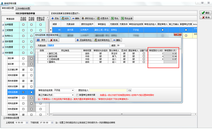 操作界面如下圖,可以為每個崗位進(jìn)行審核限時。