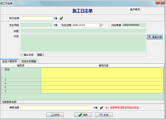 施工日志是施工方用于記錄工程項目真實情況,反饋一線信息的重要資料,也是施工管理軟件中進度來源,金石軟件的施工日志模塊為每個任務提供明細反饋,并根據(jù)工地的實際情況,設計了語音識別功能,用戶可以通過語音簡述項目情況,語音自動識別為文字,減輕了工作量和工作難度。