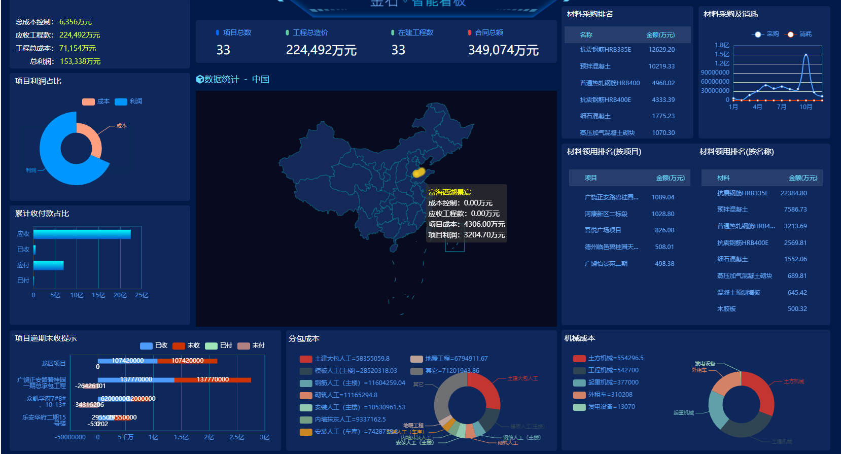 所涉及的材料成本、分包成本、租賃成本、固定資本和其他雜費,包括預(yù)算成本、計劃成本、計劃成本等全過程的成本計算和控制系統(tǒng)一次解決、最后,計算資金的靜態(tài)管理規(guī)模,實施項目預(yù)算和項目進度計劃監(jiān)督與控制列入實時的管理路軌,使公司及項目各職能部門可隨時監(jiān)管項目的進展及預(yù)算執(zhí)行情況,以做出決策。