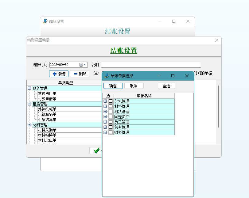 【系統(tǒng)維護】中增加了【結賬設置】功能,設置結賬時間點八大業(yè)務單據(jù),將不能再補錄發(fā)生日期早于結賬日期的單據(jù)。