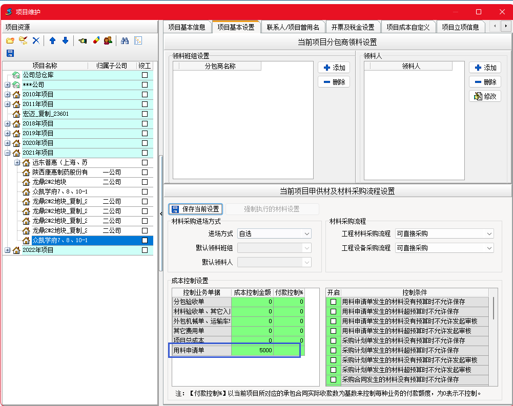 金石工程管理軟件新增用料申請(qǐng)控制功能