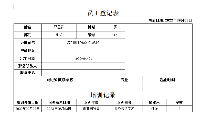 金石工程項(xiàng)目管理軟件可以填寫(xiě)員工培訓(xùn)記錄,并生成到員工維護(hù)。