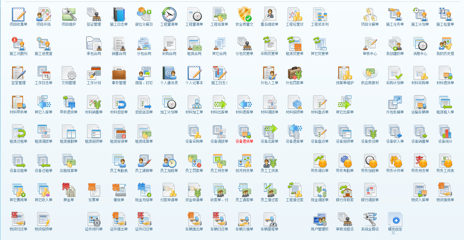 點(diǎn)擊模塊自定義可以添加單據(jù)類模塊和查詢類模塊。單據(jù)類模塊可以設(shè)置正常顯示、間隔顯示和換行顯示。同時還可以設(shè)置圖標(biāo)左右間距。具體操作如下