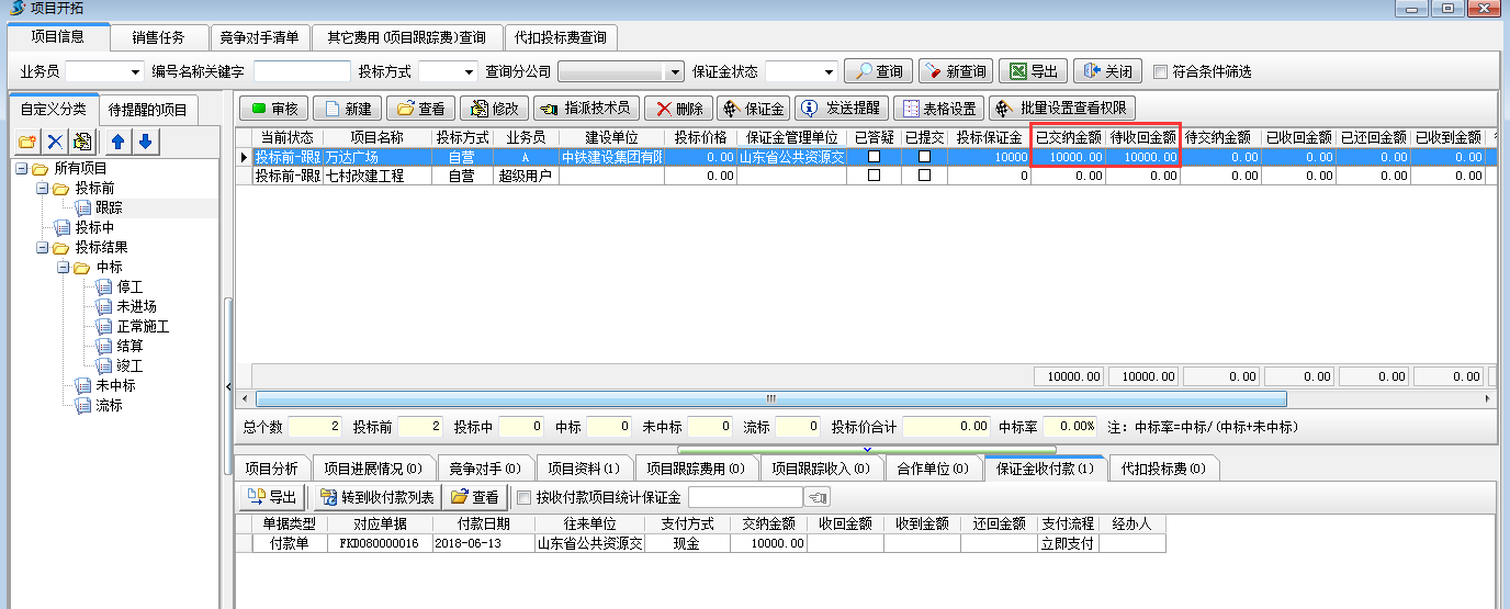 項(xiàng)目開拓中查詢投標(biāo)保證金