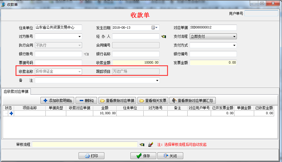 填對(duì)應(yīng)收款單,輸入對(duì)應(yīng)的收款金額,如圖:
