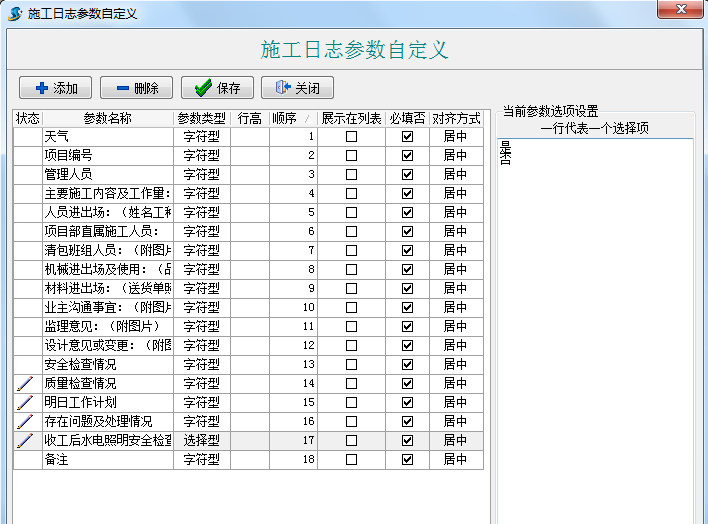 二、工程項目管理軟件施工日志自定義:菜單欄 “工程管理模塊”→“施工進(jìn)度管理” →“施工日志參數(shù)自定義”