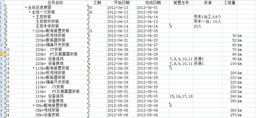 2. 來自項(xiàng)目管理軟件【任務(wù)圖編制】導(dǎo)出的excel