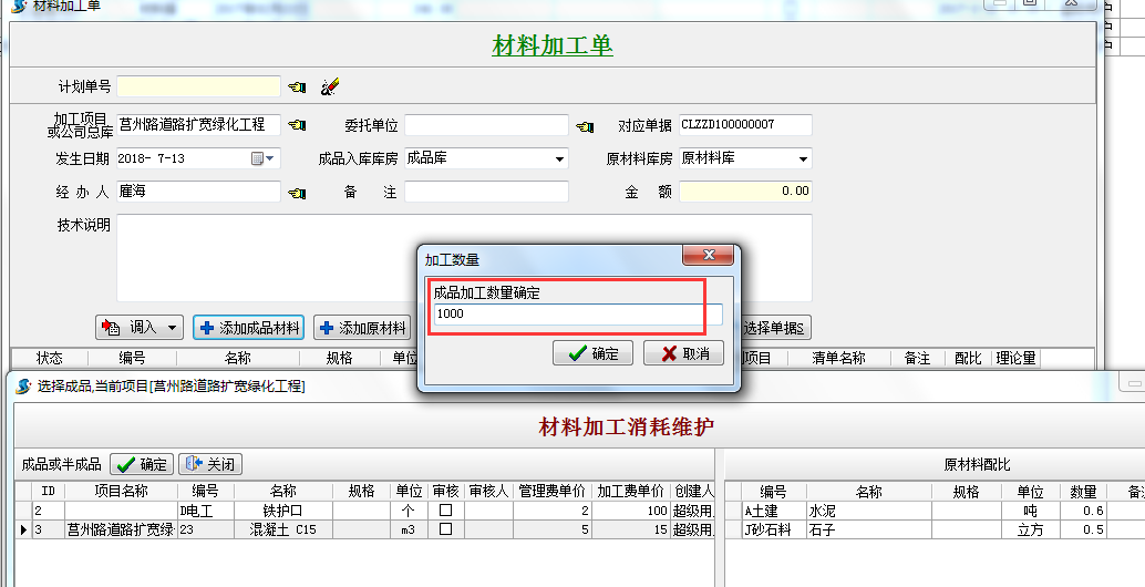 原材料的消耗配比以現(xiàn)場做實(shí)驗(yàn)為準(zhǔn),為避免原材料的生產(chǎn)浪費(fèi),軟件提供解決方案如下: