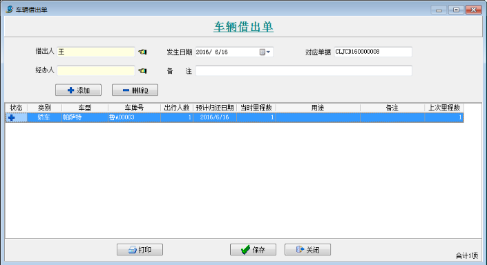 日常車輛借還業(yè)務(wù)— 主要包括【車輛借出單】【車輛里程單】【車輛歸還單】