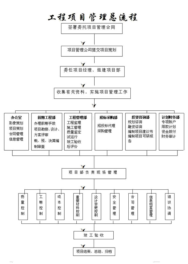 建筑項目的生產要素有勞動力、材料、機械設備、技術和資金,這些要素具有集合性、相關性、目的性和環(huán)境適應性,是一種相互結合的立體多維的關系,這就說明項目的實現(xiàn)是一個具有系統(tǒng)性的施工過程。建筑項目管理具有系統(tǒng)管理的特點。加強項目管理,必須對施工項目的生產要素詳細分析,認真研究并強化其管理。金石建筑工地管理系統(tǒng)著眼于建筑施工項目中的各種重要環(huán)節(jié)有效管理,既考慮到對單個項目中各種生產因素的管理,又考慮到建筑企業(yè)管理過程中對公司有限資源的統(tǒng)籌安排及有效利用。下文就以山東宏太為例,簡單介紹針對建筑施工企業(yè)項目管理的特點,以及如何建立完善、高效的項目管理信息化系統(tǒng)。 該公司項目管理總流程如下圖: