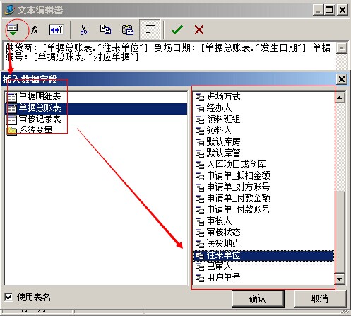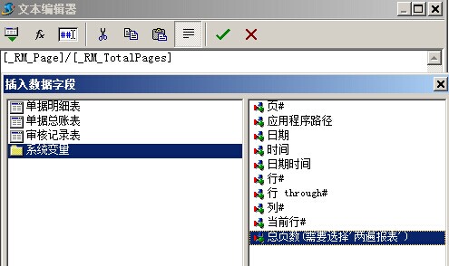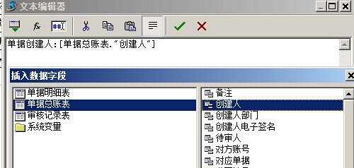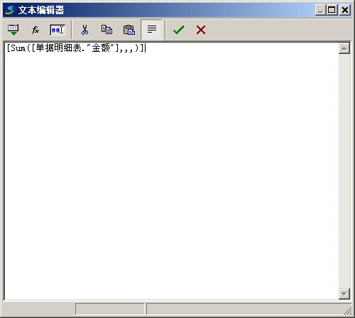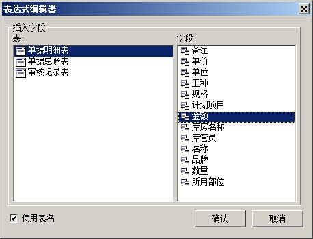 選擇好,之后點(diǎn)擊確定,就會(huì)依次保存各個(gè)選擇框,最終結(jié)果:[Sum([單據(jù)明細(xì)表."金額"],,,)]