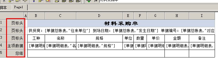 3)主項(xiàng)數(shù)據(jù):用于整份報(bào)表連續(xù)打印的明細(xì)項(xiàng)數(shù)據(jù),如果一頁(yè)打印不完,會(huì)自動(dòng)打印到下一頁(yè)。