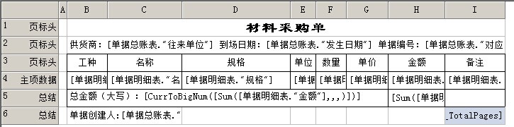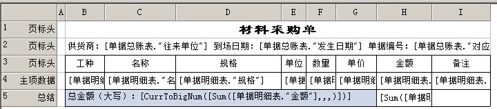 5)總結(jié):用于整份報(bào)表最后一頁(yè)打印的內(nèi)容,如果有主項(xiàng)數(shù)量,他會(huì)在最后一頁(yè)緊接著主項(xiàng)數(shù)據(jù)后打印。如果有頁(yè)注腳,會(huì)打印在頁(yè)注腳前。