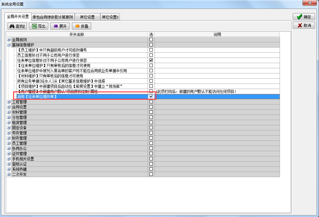 使用該功能之前需在【系統(tǒng)全局設(shè)置】中開啟‘啟用【往來單位增改單】’,開啟后可以使用往來單位增改單新增或者修改往來單位,同時(shí)往來單位維護(hù)禁止使用新增和修改功能。