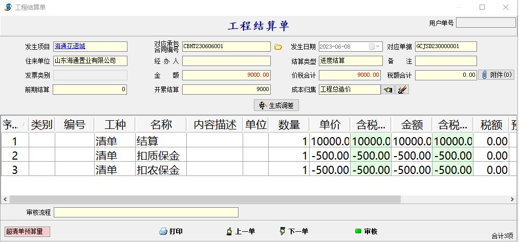 【工程結(jié)算單】增加成本歸集功能,可通過成本計劃單設(shè)置暫估收入,工程結(jié)算單產(chǎn)生結(jié)算收入,成本利潤表查詢自定義成本、利潤 。
