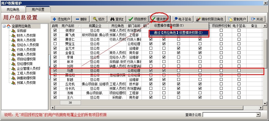 點(diǎn)【模塊授權(quán)】,有兩項(xiàng)選擇,選第二項(xiàng),【通過崗位角色設(shè)置模塊權(quán)限】