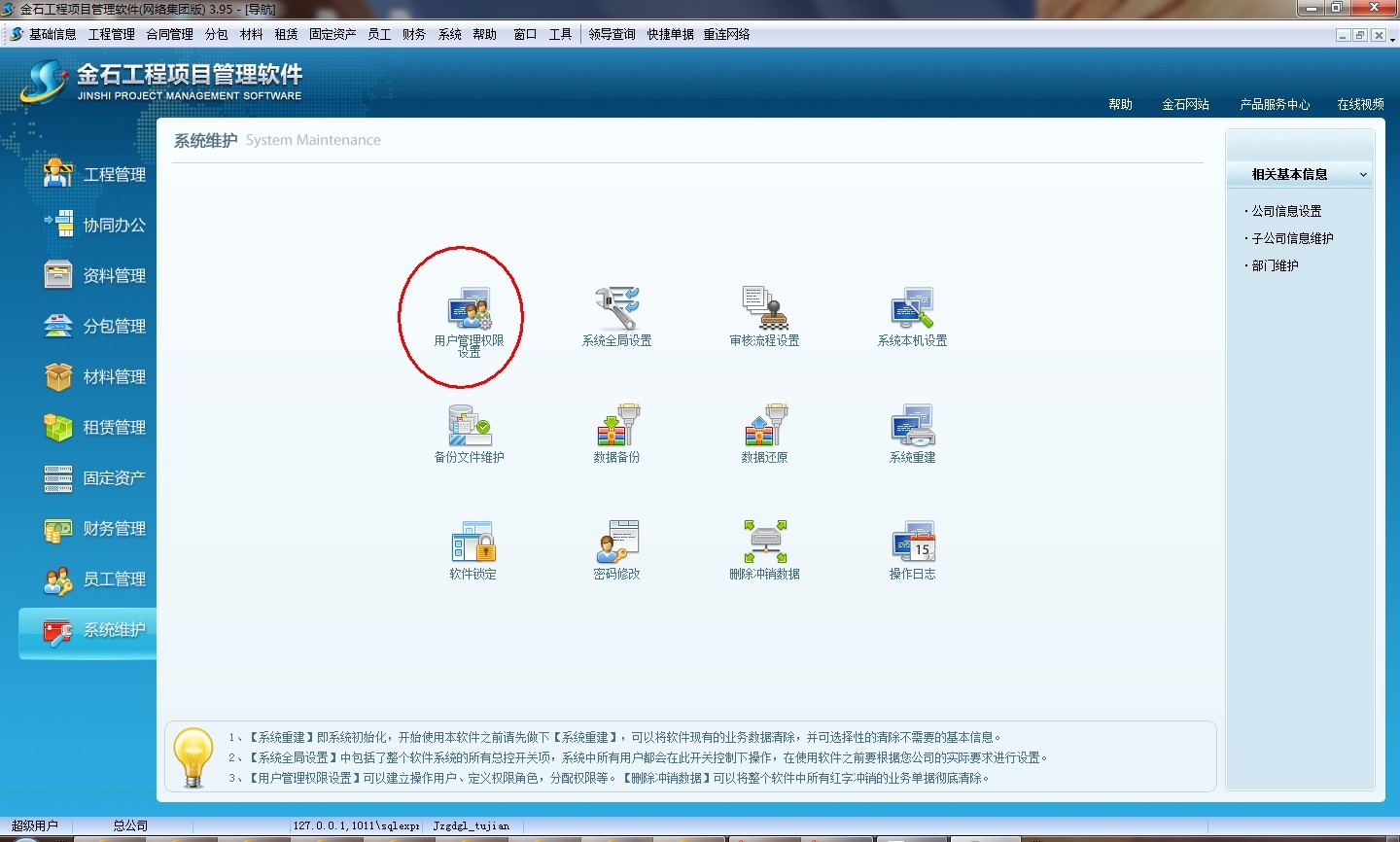 1首先用超級(jí)用戶登錄客戶端(金石軟件)