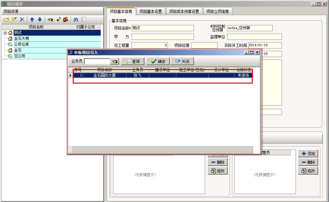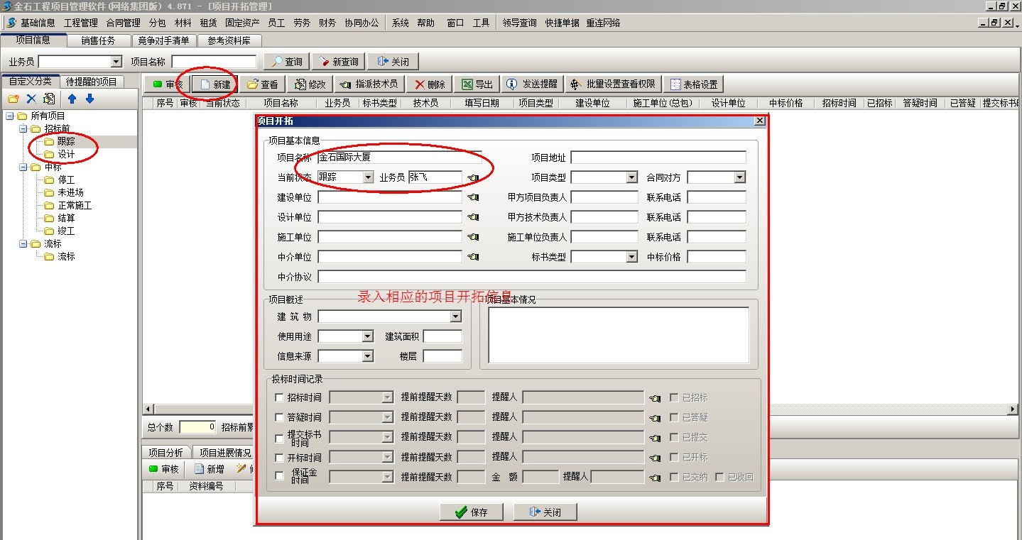 項(xiàng)目開(kāi)拓建立之后,審核,然后可以錄入投標(biāo)項(xiàng)目的一些基本資料